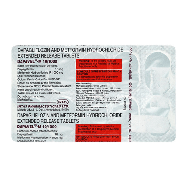 This combination provides a dual mechanism of action, helping your body remove excess sugar through urine while also improving insulin sensitivity. When taken along with a balanced diet and regular exercise, Dapavel M supports better long-term glucose control and reduces the risk of diabetes-related complications.