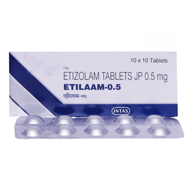 Etilaam 0.5 Tablet contains Etizolam 0.5 mg, a medicine commonly prescribed for the short-term treatment of anxiety disorders, panic attacks, and stress-related sleep disturbances. It belongs to a class of medicines that help calm overactive brain signals, promoting relaxation and emotional balance.